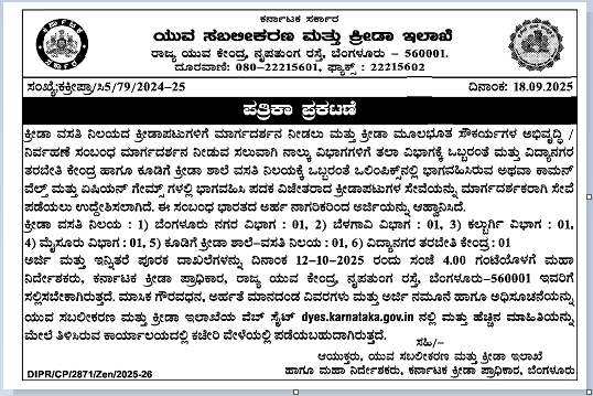 - Organization Name: Department of Youth Empowerment and Sports Karnataka (DYES Karnataka)